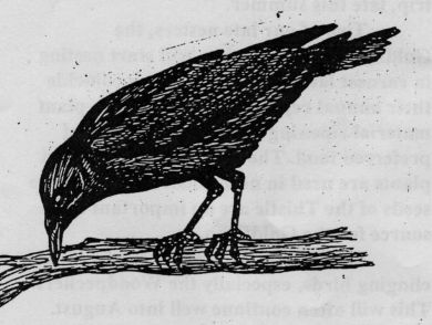 The large flocks of Crows get much smaller in the spring as adult birds prepare to nest. Many times three or four other Crows surround the mating pair. These are thought to be last years young that will not breed until their third year. In fact these young birds may even help the adult pair build the nest which is generally hidden in the crotch of a tree near the trunk. Mature conifers and yews are preferred, usually in the top half, but they will nest in deciduous trees when evergreens are not available. Territorial defense seems to be mostly limited to the nest tree.