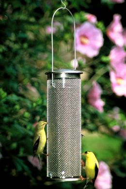 The conical shape and size of the Goldfinches beak aids in the extraction of seeds from the seed heads of thistles, sunflowers, and other composite plants while clinging with their feet. They will also feed on the seed heads of grasses and dandelions along with the seeds of alder, birch, and cedar trees. Goldfinches are common in suburbs, parks, and urban areas. At backyard bird feeders they prefer Nyjer thistle, black oil sunflower seed and hulled sunflowers. I have a seed tube feeder filled with Nutra-Saf safflower seed which seems to attract them as well.