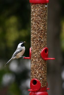 Caged seed tube bird feeders thwart unwanted birds such as European Starlings, Common Grackles, even squirrels, those agile daylight robbers. Recommended seed is hulled sunflower seed or medium hulled sunflower seeds. Chickadees, finches, nuthatches, and all the woodpeckers feed unobstructed with ease.