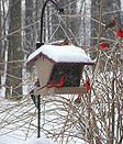 If squirrels are robbing the seed from the feeder you intended for the birds to enjoy, you may want to consider adding a squirrel baffle or investing in a squirrel proof bird feeder. Another alternative is to use safflower, or Nutra-Saff safflower seed in the bird feeder that squirrels raid most often. Squirrels do not care for its bitter taste. Grackles, the large black birds that seem to overpower the bird feeders at times, do not care much for safflower either. Yet it will attract most all your favorite backyard birds and can be used in any type of bird feeder.