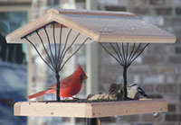 Although the durability and natural look of these feeders made from Inland Red Cedar continue to be preferred, the new line of feeders made from 100% post consumer recycled plastic is gaining in popularity. Many of these bird feeders have a 20 year warranty against fading, pealing, cracking, and chipping. They clean up like brand new, even after years of use. And speak of easy cleaning, many of the cedar and recycled plastic feeders we stock have removable perforated steel bottoms. This also allows moisture to pass through and the seed to remain dry.