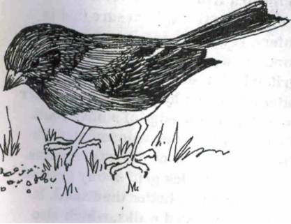 During their stay here in the winter they often pick a thick conifer or cedar tree for roosting at night as it will provide shelter and safety from both weather and predators. They often return to the same wintering areas each year, so you may be seeing the same Juncos in your backyard each winter, provided they survived the nesting season up north. We love to see their vigorous scratching as they search for food. All native Sparrows scratch with their feet much like a chicken does to turn up seeds. When you are out in your yard this winter, listen for the soft smacking chips of this little bird. As spring approaches they will begin singing their musical little trill, which sounds something like the drier trill of the Chipping Sparrow. The Dark-eyed Junco then drifts silently away in late April, disappearing as mysteriously as it appeared in October.
