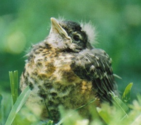 First year Robins are easily detected by the speckled striped breast unique to the Thrush family, which includes Bluebirds. In fact, most birds newly hatched are easily defined by their common characteristic of fluttering wings and open beak as if to say, “feed me” “feed me”.