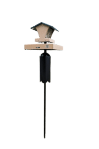 - Place the baffle: Position the baffle above the feeder ensuring that a squirrel cannot jump from a nearby structure onto the baffle or feeder.
