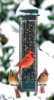 Wild Bird Habitat has one of the largest selection of squirrel proof bird feeders you’ll find anywhere. Any wild bird feed or mix of wild bird feeds are appropriate for these bird feeders. Our Brome Bird Care “Squirrel Buster Classic” is one of our top sellers with full warranty. We have a variety of Brome Bird Care squirrel proof bird feeders in stock. Droll Yankee has a selection of squirrel proof bird feeders as well with full lifetime warranties. Check out Wild Bird Habitat’s line of squirrel proof bird feeders. The one I particularly like is the Arundale Sky Café. This is a large capacity bird feeder that is squirrel proof. An optional wire guard is available to deter larger birds such as blackbirds. There are even dividers you can put in the hopper which allows you to offer 4 different kinds of wild bird feeds. Ask our staff about our squirrel proof bird feeders.