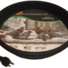 The 3-in-1 Heated Birdbath keeps birdbaths ice free down to -20°F with three different mounting options. All hardware is included to install this thermostat-controlled birdbath on a post, deck rail, or on the ground; you choose the location that best suits your needs. This insulated birdbath turns on and off automatically. Construction includes a plastic basin and powder-coated steel exterior. Power cord tucks underneath basin for year-round use. 75 watt birdbath operates on just pennies per day. One year manufacturer’s limited warranty. Terra Cotta/Black. UL-listed. Extension cord required in most cases. Holds 2 quarts. 13″ dia bowl.