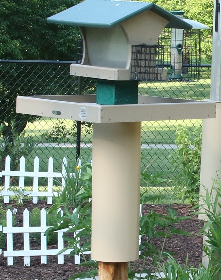 Mount your bird feeder on a 4 X 4 post with ease. Attaches to bottom of bird feeders and slides over a 4 X 4 wooden post. Removes easily to maintain the feeder. Made of polylumber post-consumer recycled materials.