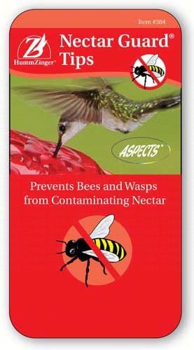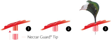 Nectar Guard tips easily slide onto the feeding ports on the underside of the feeder cover. The flexible membrane in the center of each tip easily opens when hummingbirds insert their beaks to feed and close up tight when beaks are removed. Nectar Guard tips create a barrier flying insects can’t penetrate. 12ct.