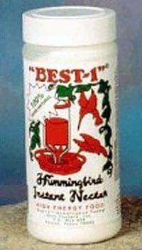 Best-1 Hummingbird Nectar. Each convenient plastic jar makes 7 cups or 56 ounces of nectar when mixed with water. Just use what you need then close the lid! 100% pure natural high energy food with no coloring for hummingbirds. Size: 14oz Jar Weight: 1 lb.