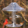 This clear acrylic geodesic dome mounts on the 9″ x 9″ Hill Top hanging platform bird feeder, protecting the bird seed from rain and snow, yet allows you a good view of the birds at the feeder. Easy to attach. No tools required