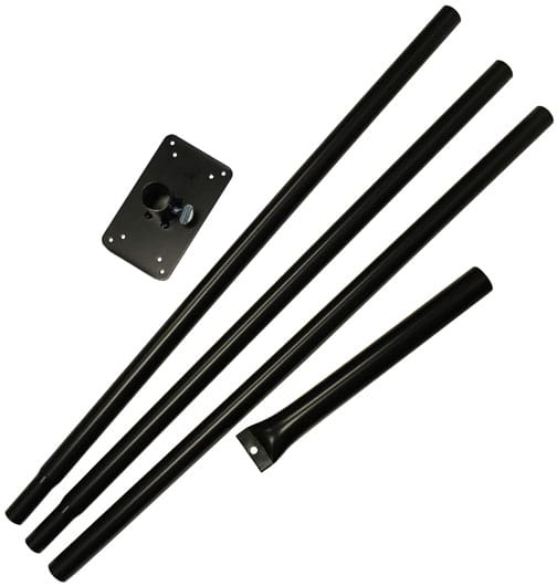 80″ Heavy duty 5-piece sectional pole set (70″ out of ground height). 1″ Diameter. Comes with 3- pole section, flange top to mount a wooden feeder or house, and a pound in ground socket.