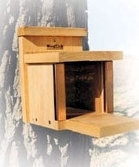 Woodlink Squirrel Box Feeder. Made of kiln dried natural cedar. Fill with peanuts in the shell or whatever feed your squirrels like and enjoy watching the squirrels open the lid to eat. Size: 7.25″W X 10.25″ X 9.25″H / Weight: 3 lbs / Capacity: 1.5 lbs.