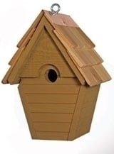 Another clever addition to our line of small, functional and artfully designed houses. Solid cypress with copper trim and an eyehook for easy hanging. Drainage, ventilation, and a rear panel cleanout. Dimensions: 6″ X8″ X 12″ with a 1-1/8″ opening. Weight: 2 lbs. Ship Weight: 5 lbs.