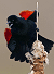 The female builds the nest by herself weaving stringy plant materials between several plant stalks. She will add wet leaves and mud making an interior cup she will then line with fine grasses. As she constructs the nest the male stands guard and fends off any approaching danger. He is a fearless defender of their home turf, rising to attack crows, hawks, or whatever dares to cross into the nesting area including humans. They have been viewed hanging to the backs of crows, stabbing away with their beaks until the intruder is out of the territory. The female will lay between three to five pale blue to green eggs with brown or black markings. She is the sole incubator of the eggs which will hatch in eleven to twelve days. In another ten days the young are ready to leave the nest. The male blackbird then plays an increasing roll in rearing them. The parents will feed the fledglings for another ten days or so after which time they will be on their own.