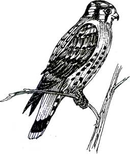 Wingtips: Other raptors which hunt birds during the winter months and may be seen hunting near backyard bird feeders are the Cooper’s Hawk and American Kestrel, our smallest falcon. The Cooper’s Hawk is very similar to the Sharp-shinned Hawk in all plumages with the exception that the Cooper is much larger at 14 to 20 inches tall. They will capture medium sized birds using a low, stealthy approach-flight or after a short chase. They will use natural cover and even manmade structures to conceal their approach. In open areas the Cooper may drop on prey from high flight.