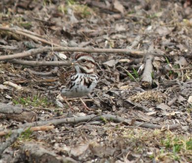 Look for Song Sparrows hopping and walking on the ground or hopping and flittering through low tree branches, grasses and other vegetation. They move about very secretively with the exception of males when they are singing from exposed perches. They sing most of the year and have been known to respond to “pishing”, a sound made by birders to get the attention of birds. In flight they travel short distances between perches or cover with the tail pushing downward.