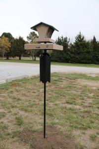 2. Make sure you place the squirrel baffle on the pole so its top is at least 4’ up from the ground, preferably right under the feeder itself.