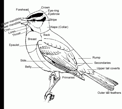 3.Look at the details of the bird referred to as “field marks”. Does the bird have wing bars, eye-ring around eye, eyebrow above or line through eye? Is the crown a colored cap or striped? Is the body a solid color or does it have stripes or speckled body parts? The beak is important as well. Does it have a thick beak for cracking seeds, small pointed beak for collecting insects, long beak for piecing prey or hooked beak for tearing prey?