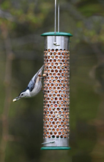 (Photo: White-breasted Nuthatch on our most popular peanut feeder)